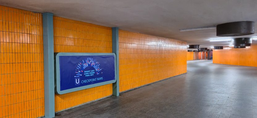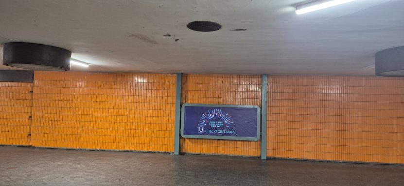 U-Bhf Checkpoint Mars: Vielleicht ein zukünftiges Verkehrsprojekt für Auswanderer, die sich im neuen ICC dann bewerben zur Ausreise zum Mars, weil sie in Berlin keine Perspektive mehr sehen